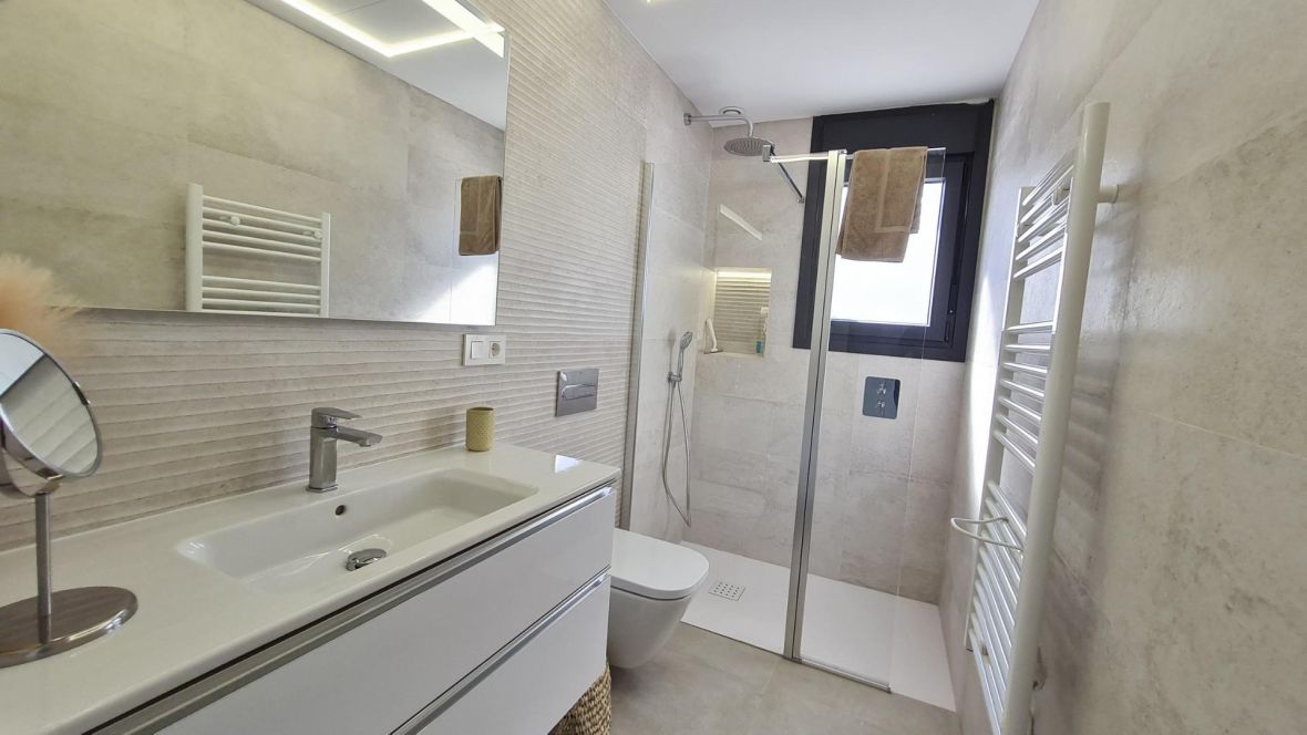 Store vinduer i stuen gir direkte tilgang til bassengområdet og sørger for et naturlig lysinnslipp. Energieffektive tillegg som solcellepaneler og forhåndsinstallert luftkondisjonering med kanaler sørger for moderne komfort og bærekraft. Balay-apparater (induksjonstopp, stekeovn, mikrobølgeovn, avtrekksvifte, kjøleskap, integrert oppvaskmaskin og vaskemaskin) gjør det enkelt å flytte inn.
